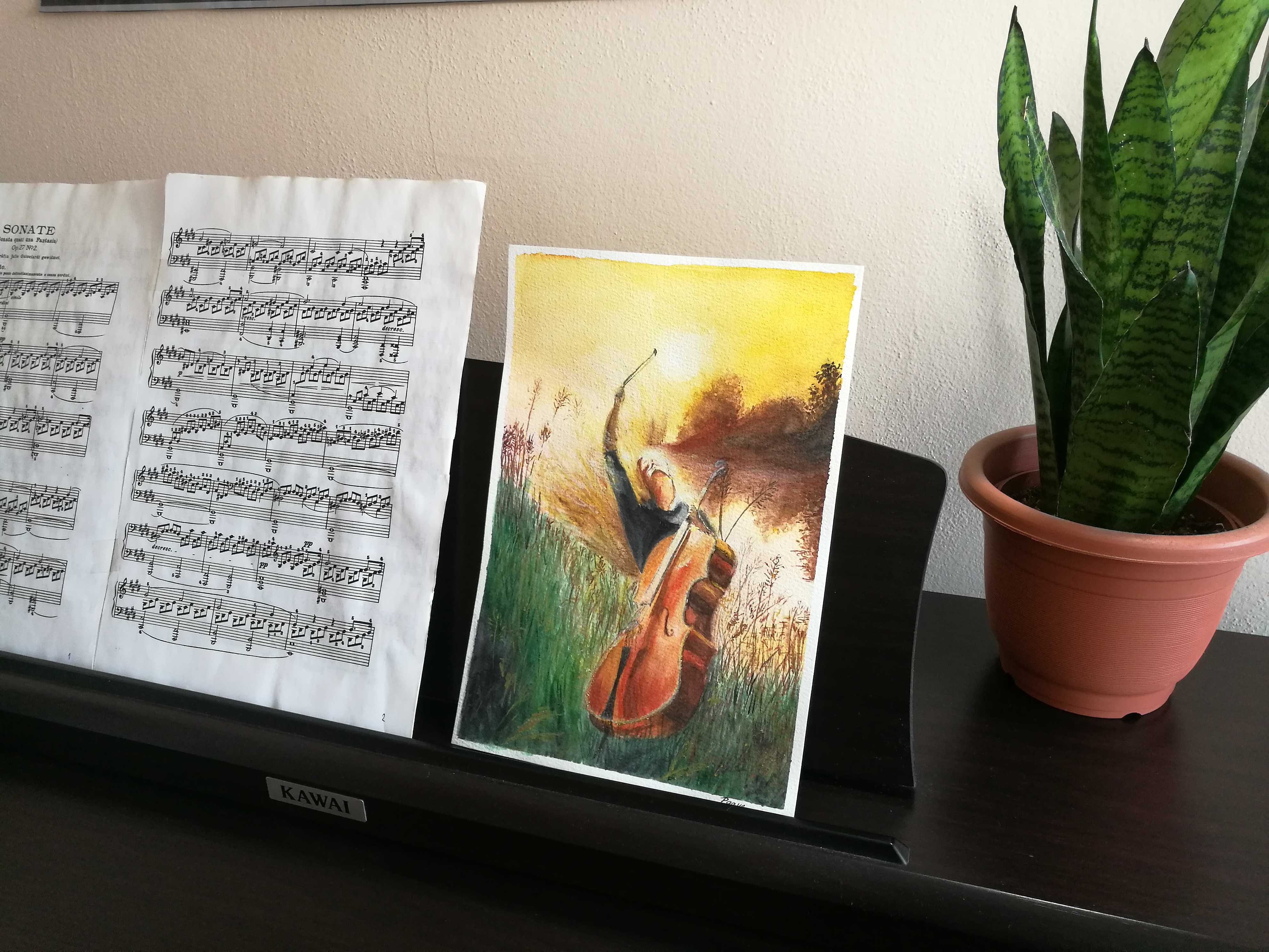 Ráno usedám k obrazu a přidávám další vrstvu. Když vím, že barva potřebuje chvíli usychat, beru do ruky látku a šiju další kousek do mého nového šatníku z přírodních materiálů neboť nechci už shromažďovat umělá vlákna, která mou pokožku jen dráždí. Opět tvořím z představ v mé hlavě, které se tam někde uhnízdily, asi z těch stovek obrazů, které jsem během života zahlédla. A pak zasedám k pianu a cítím největší nával pocitu štěstí, uvolnění, lásky, údivu, harmonie, radosti, které nedostávám při žádné jiné činnosti. Nezbytně nutné z hudební teorie, co jsem se byla nucena naučit, uvědomuji si, jak bych bez těchto znalostí a hraní úhozů a rytmů nebyla schopna takto uvolnit své tělo. To co nás ve škole snad i nebavilo ale cítili jsme, že je to důležité se opravdu najednou ukazuje, že vytvořilo naši budoucnost. Děkuji Vám paní učitelko, byla jste vždycky má hrdinka.